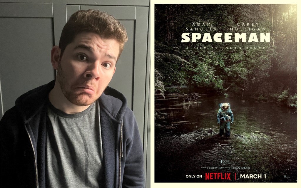 Czech astronaut Jakub Procházka (Adam Sandler) is investigating a mysterious cloud of dust above Jupiter. He is alone in space, the transmissions he gets from his superiors being his only social interaction. That is until a spider-like alien (voiced by Paul Dano) appears in his ship and connects with him telepathically. Jakub names the creature Hanuš and as its cerebral bond with him strengthens, the astronaut relives his memories and is forced to reevaluate the decisions he’s made in his life. Particularly those that concern his pregnant wife, Lenka (Carey Mulligan).